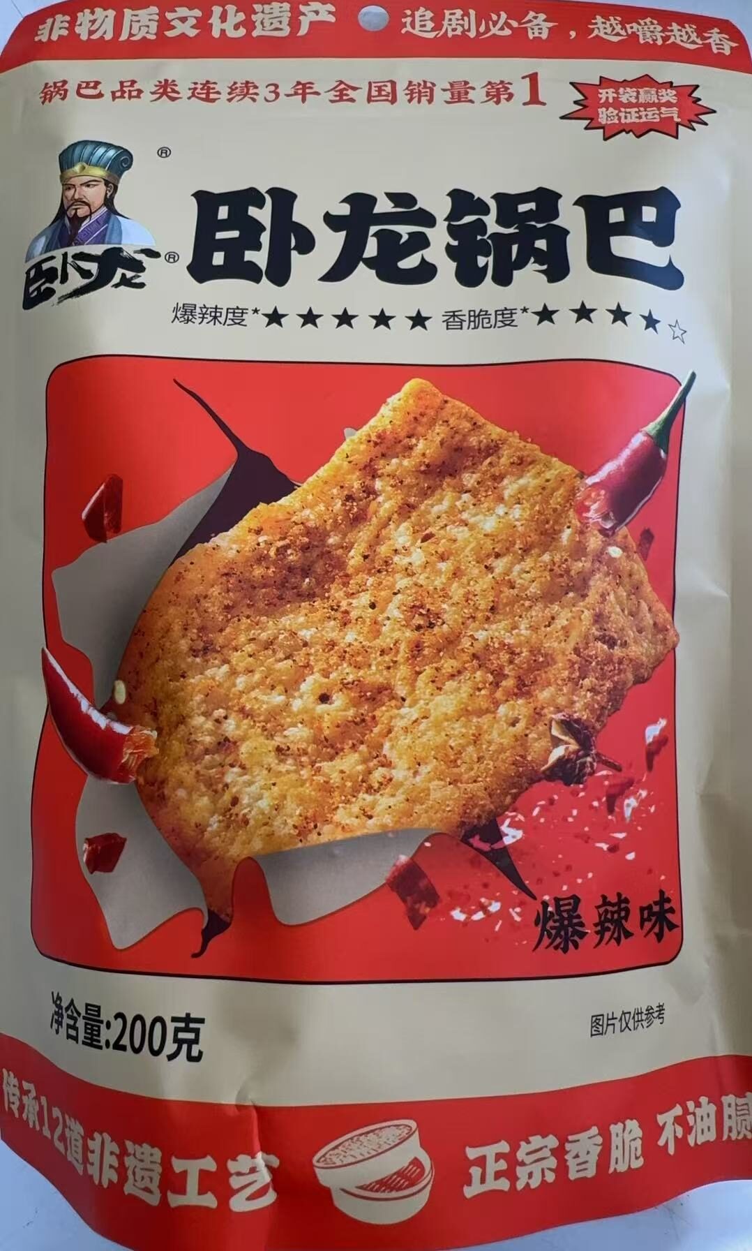 卧龙锅巴爆辣味 200g(薯片锅巴零食) 数量